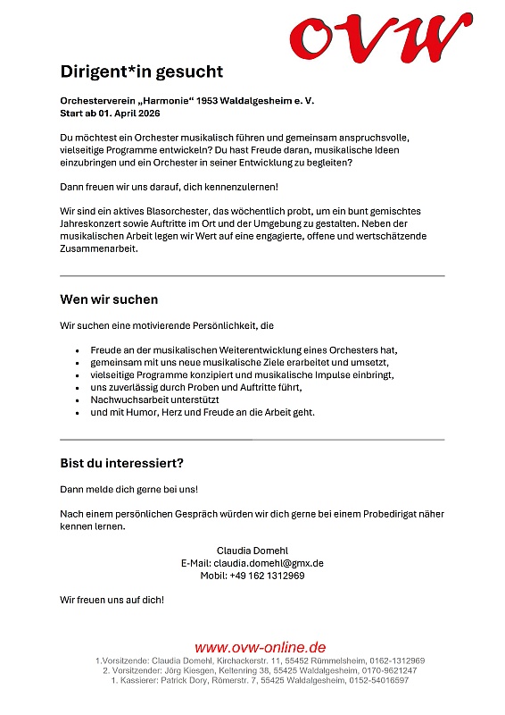 Die nachfolgenden Mitgliedsvereine unseres Verbandes suchen eine neue Dirigentin oder Dirigenten.